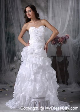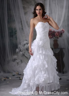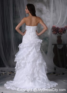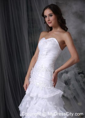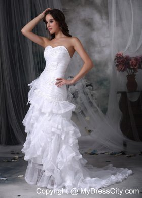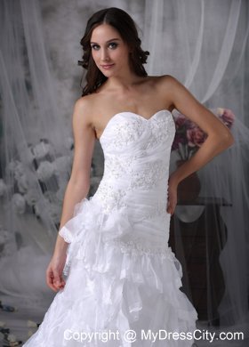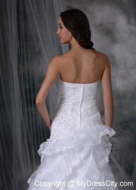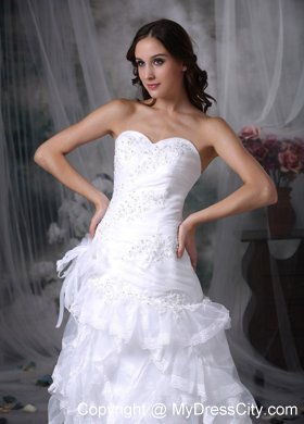 Exquisite and gorgeous blue snow-white dress. The sheathy bodice which flatters the slim line covered with ruches and exquisite embroidery features a sweetheart neckline. The floor length skirt is full of multi-tiered ruffles alternately in organza contributes to the intrication and luxury. Zipper up back completes the elegant look. You will have heads turning in this dress!