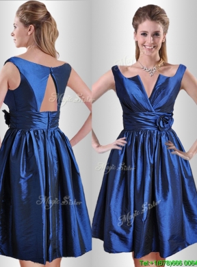 Exquisite Open Back Hand Crafted Flower Prom Dress in Royal Blue 92.35 Silhouette: Empire
