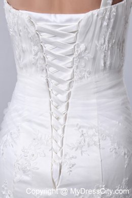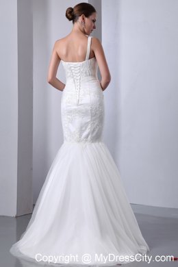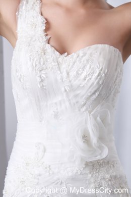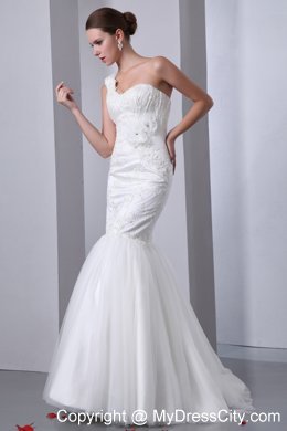 This gorgeous mermaid style wedding dress embellished with a elegant sweetheart neckline. The bodice has a pleated and floral single strap style, floral appliques are all over the skirt. The soft and fishtail skirt is floor length. As graceful, chic and luxury as it can get, this stunning wedding dress has a court train and is perfect for venues such as outdoor, ballroom and hall in the seasons of spring, fall and summer.
