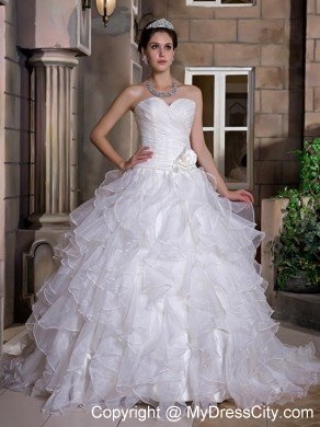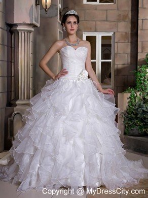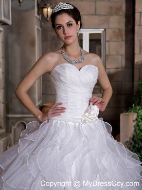 Sweet, romantic dresses never go out of style and are perfect for your wedding. It is characterized by a sweetheart neckline and strapless bodice. Floral embellishment on the bodice makes the dress like a flower in full bloom. Pick-ups on the puffy skirt is splendid. It features a zipper-up back. Are you still hesitating? This is a great choice for you. Your memories in this dress will long last.