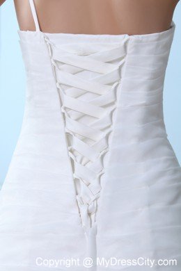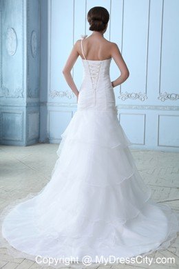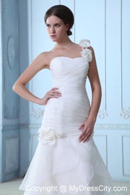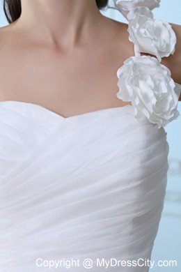 You will look like an angle in this gorgeous wedding dress! This one shoulder dress featrues hand flower strap and a sweetheart neckline with fitted bodice. Cross over ruches throughout the body accent your curve. The layered sweep train completes the look. This dress will help you to make your dreams come true! Do not miss it!