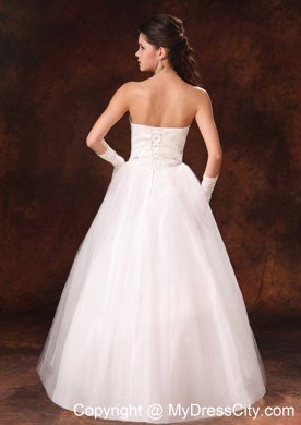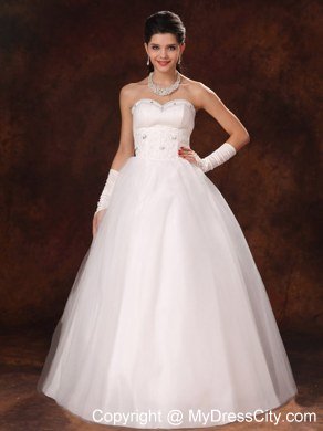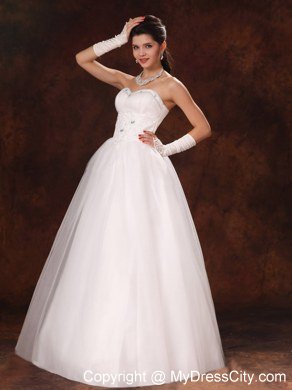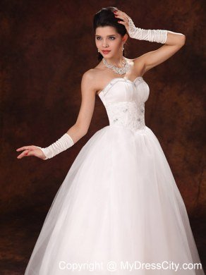 Simply designed dresses can also make a dramatic first impression, this white wedding dress is the perfect example. The elegant strapless sweetheart bodice features nice beadwork and exquisite appliques. The full A-line tulle skirt is pure with no redundant, and an adjustable lace up in the back completes this fabulous design. You are sure to be the most beautiful bride. What are you looking for? Just this one!