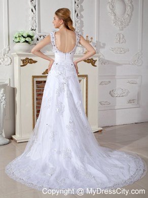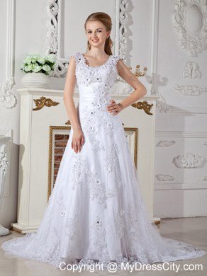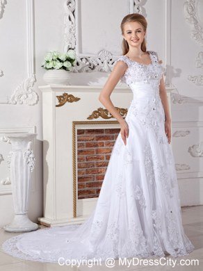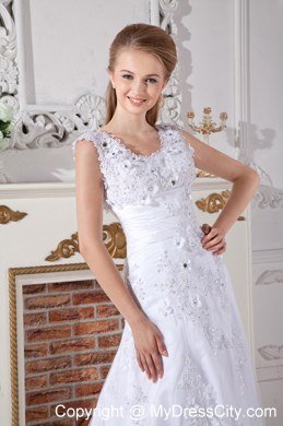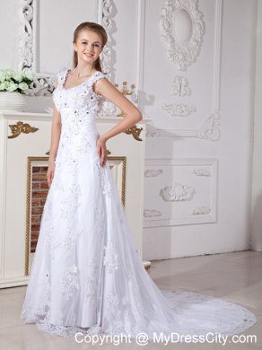 We love ornate wedding gowns. They harken to a time when traditional gowns were all about opulence. This gorgeous example is made from a gauzy lace fabric and features sleeves contour the blatant bust. The waist stands out with few appliques flirt your shape. Half open back show off the sassy.The back of the dress extends into a gorgeous chapel train. A zipper closure secures the dress in place and ensures a great fit.