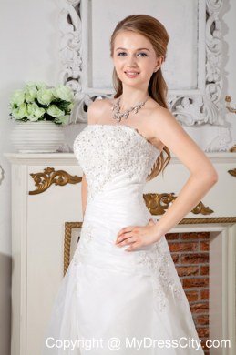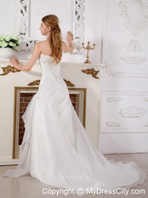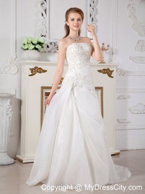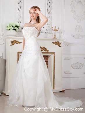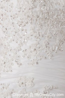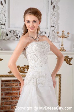 This kind of wedding dress features its strapless design in a-line silhouette with lace and beading. It is a perfect dress combined by lace and organza fabric. The clic lace fabric covered the bodice and the dropped waist with ruching organza on the waist and the back to flatter the shape. The niftic A-line dress features a shape that is fitted around the bodice and flows out to the ground, resembling the outline of an uppercase A. Lace up colosure cannot be more fitted for this traditional wedding dress.