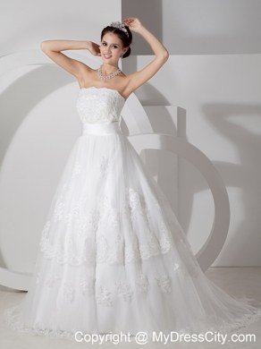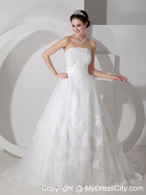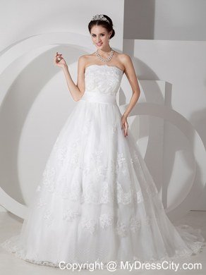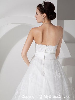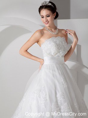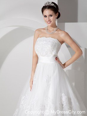 Unique and lovely, this sweet bridal gown is a great choice for a modern bride! The strapless bodice is brimming with smart flower-shape lace for a flattering look. The smooth dropped waisband that contours the waist comfortably.The full-length, A-line skirt is beauteous with high-quality lace that is wonderfully in harmony with the fitted midsection. Finally, a faultless zipper up completes the look.