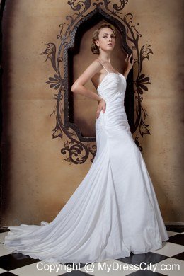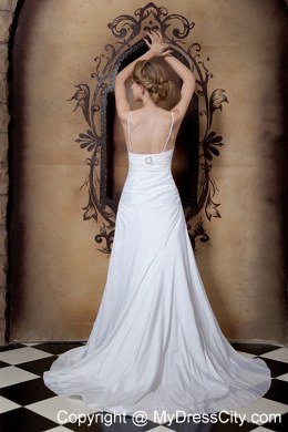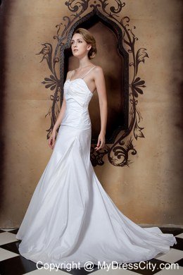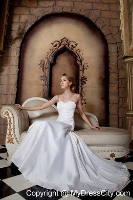 If you have a flair for the dramatic and are not afraid to be noticed this spaghetti straps dress features a sweetheart neckline and ruched empire bodice may help you. It features sweetheart neckline and also adorned by ruchings to accent your slim figure. The chapel length train will make you more attractive. The beaded ruchings in the back will make you to be the shining star on your event day.