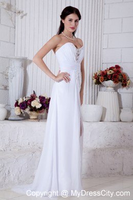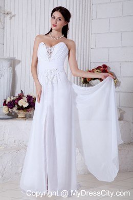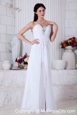 Star in your own fairytale at your prom or formal! It features a lovely strapless bodice with a sweetheart neckline connected a sheer tulle overflowing with refined applique arousing your interest. A coordinating waist sash adds a detail to the mid-section of the dress. The long-length skirt with loose fit has a sheer tier that will let you floating through the party with her perfect and flawless figure and a lslit in front which will make you more sexy. The back is accented with a hidden zipper and a lithe ribbon. You will dump on this white prom dress!