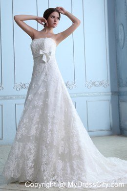 Simple and stylish. This elegant A-line wedding dress is composed soft and delicate lace. The corset bodice features a simple strapless neckline. A contrasting sash with bow accented, such a cute design make the dress chic and sassy. The A -line skirt flows free to create a chapel train.The classic hidden zipper up back secures the dress in place and make it easy on and off.