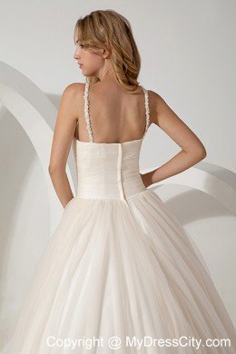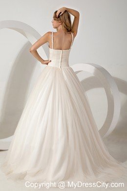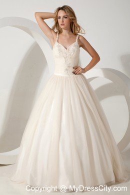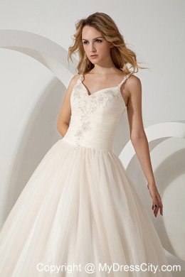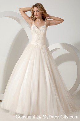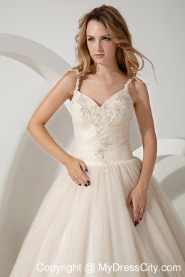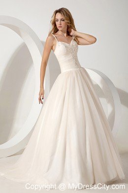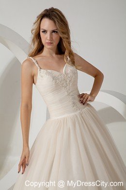 So gorgeous gown includes design of embroidery encrusted straps which is generally considered more provocative than other styles.You can find that applique decorate the bust and the middle of the ruched bodice which looks charming. The low back with zipper closure will make you looks sexy. The satin overlaid with tulle makes you fell soft and smooth. The slim waist with the sweep train design will attract many appreciated eyes.