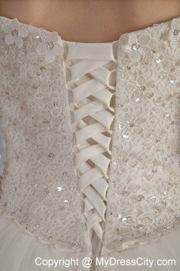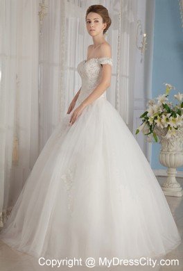 If you've spent any time perusing bridal magazines, you'll see that designers have been visiting older, more classic styles in their designs lately. It is a pretty lace bodice with two gorgeous flower beading straps. The full floor-length skirt creates a beautiful shape to complete the dress. The dress sways beautifully across the floor when you move, as if you're floating on air. A bit retro and a lot gorgeous!