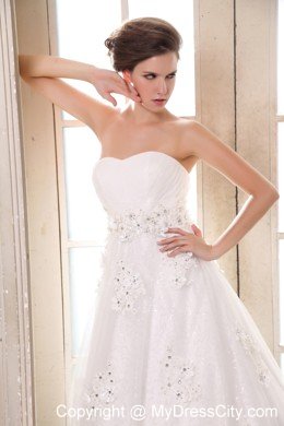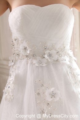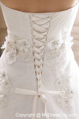 Sweet, romantic dresses never go out of style and are perfect for any occasion.The strapless bodice features a sweet heart neckline and is adorned with pleated ruching throughout the whole bodice while theexquisite appliques creats a amazing waist band that greatly adds your feminine figure so much. The full skirt is scatteredly accented with the same floral appliques as well. A lace-up back completes the look.