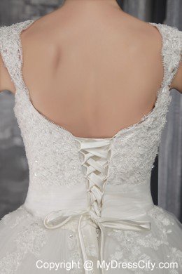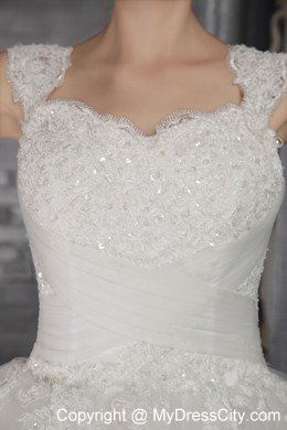 This fabulous wedding dress has all the elements to make it an instant classic. It features a sweetheart neckline with half-cap straps. The waist was ruched and crossed. The outlayer lace makes the dress perfectly, wear this wedding gown and you will like an angel.