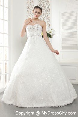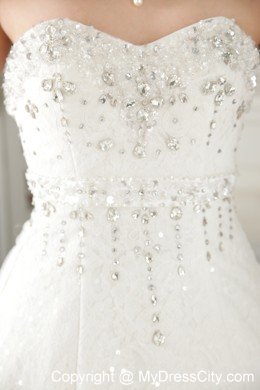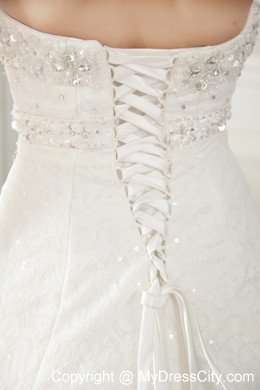 Wrap yourself in the elegance of lace in this gorgeous gown. It features a beautiful lace overlay, which encompasses the dress throughout. It has a fitted strapless bodice with a sweetheart neckilne and sparkling beadings and rhinestones accent. The beaded waistband, adding to its beauty, and gives the lace skirt a lovely effect as well. A corset-style closure secures the dress in place. So lovely!