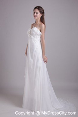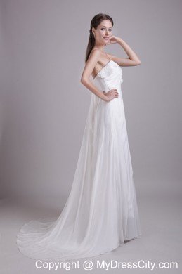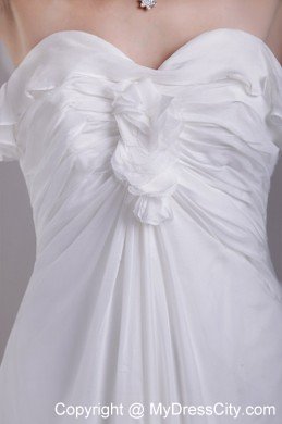 This ancient roman style dress is perfect for a outdoor warm-weather event. It features a toga-style wrapped bodice with strapless sweetheart neckline. The middle of the bodice is embellished with lovely flower petals.The floor-length skirt falls in soft pleats. A sleek dress that feels just as good as it looks.