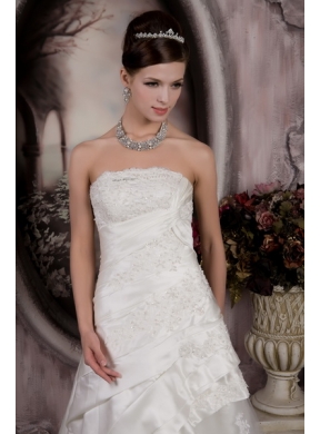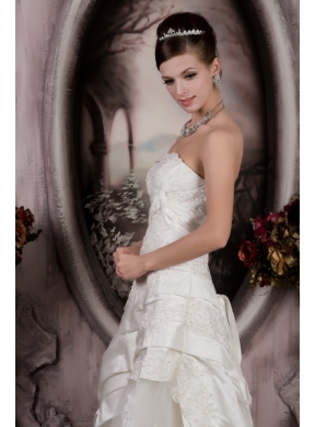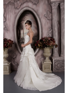 This A-line prom gown has spectacular details that are sure to wow. The embroided sweetheart neckline is extremely flattering.The floor length skirt has a lace fabric in the bottom and smooth train in the back, keeping the look sleek and feminine.Make an entrance in this elegant and romantic strapless gown.