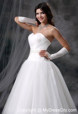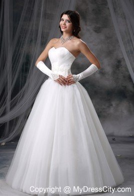 If you are looking for a wedding gown that is simple, yet elegant, this one would be a great choice. This a-line wedding dress features a sweetheart neckline with dazzling ruches and appliques. The skirt features more of the beautiful layers. A hidden zipper makes for easy off and on and secures the dress in place. All eyes are on you!