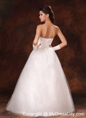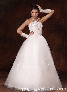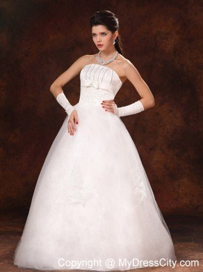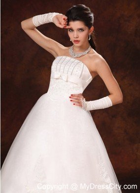 This is a very amazing wedding dress. This new designed dress is made of high quality tulle, which make it looks light and airy and crafted. It is a pretty fitted bodice with a strapless neckline decorated with exquisite beadings and appliques. Some symmetrical vertical lines and the sash with a cute bowknot in bodice bring dramatic effects. The full floor-length skirt creates a beautiful shape to complete the dress. The dress sways beautifully across the floor when you move, as if you're floating on air. Wear it, the bride will be the shinning star in the wedding ceremony.