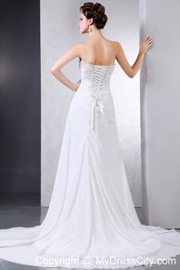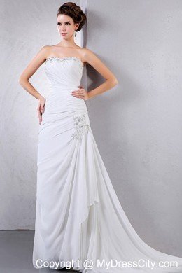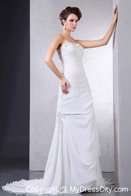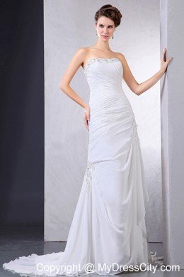 You will be the most beautiful brides of the wedding in this straps straight neckline bodice and A-line skirt dress. The dress is covered with delicate ruch which upgrades your tastes and beautifies the dress. The dress is derocated with the exquiste applique. The lace up back is popular and completes the look.