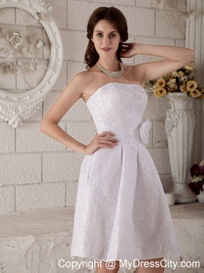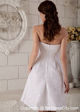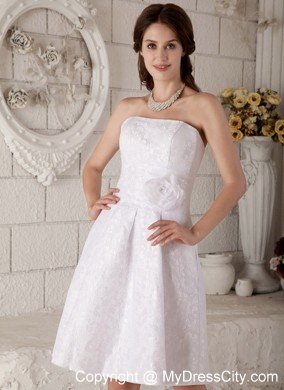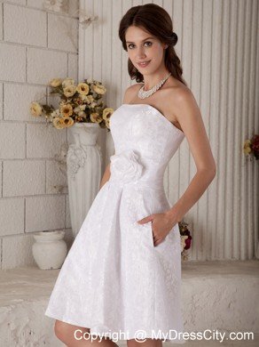 If you're looking to make a lasting impression at your upcoming formal event, this stunning white dress can make sure that you do. A fitted,strapless bodice is highlighted with the empire style. The floral embellishment adds the charm of the short dress and decorate the curve. A hidden zipper up style closure in the back secures the dress in place. An absolutely perfect gown when looking your best is a must.