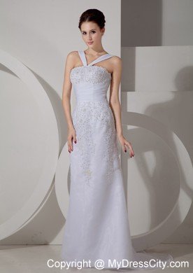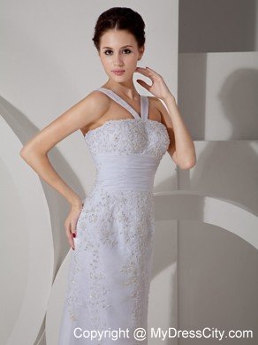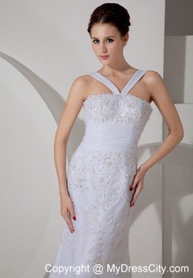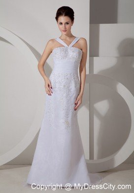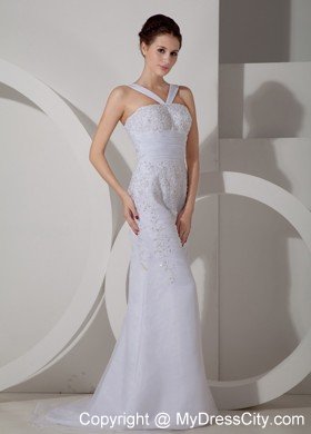 This fashionable wedding dress presents you at your sensuous best. Straps that are around the neck lead to a strapless neckline, as well as to make the waist dropped.This dress boasts voluminous beaded appliques covered on the plump bust and then blends it to the upper silhouette draping like flowy willow twig. The back is amazing with brush train flamboyantly.