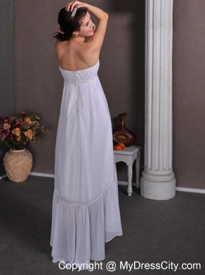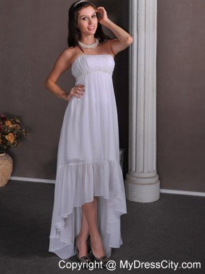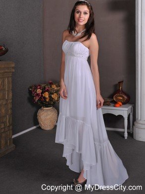 We love long, flowing dresses with soft feelings. They are a great choice for any body style and are always in style. This dress features a strapless bodice with beautiful shaped beadings and rhinestones accents in the middle of the bust. The focal point of the skirt is the hem made from ruched lightweight fabric which is short in front and extends into a pretty mini-train in the back, which creates a dramatic effect when worn. Perfect for any formal function.