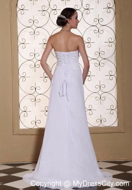 Star in your own fairytale at your prom or formal! It features a lovely strapless bodice with a sweetheart neckline connected a sheer tulle overflowing with refined applique arousing your interest. A coordinating waist sash adds a detail to the mid-section of the dress. The long-length skirt with loose fit has a sheer tier that will let you floating through the party with her perfect and flawless figure and a slit in front which will make you more sexy. The back is accented with a corset up back. You will dump on this white prom dress!