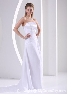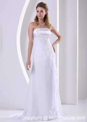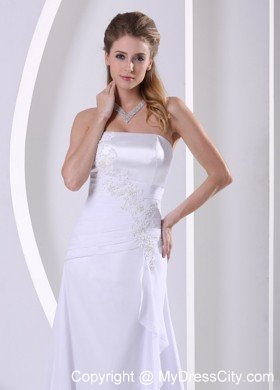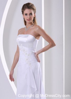 This elegant inspired dress is sure to please even the most picky fashionista. A fitted, strapless bodice is highlighted with the appliques. The floor-length skirt is perfect for both style and comfort. Romantic fabric forming a handkerchief on one side falling down to the floor. The gorgeous skirt is complete with a sweep train. The lace up back completes the look. A very classy look for any event or occasion.