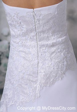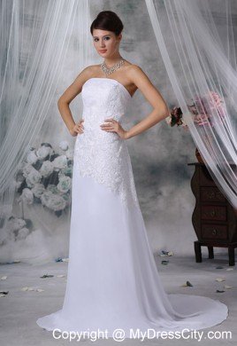 Put a bit of sparkle in your step with this fabulous designer inspired wedding gown. It has a strapless bodice that has been heavily embellished by floral embellishments. The accents continue to stretch extend into the hip line. The sheer chiffon form skirt and the back extends into a mini-court-train.This is a fantastic dress that would look great for any occasion, function or event.