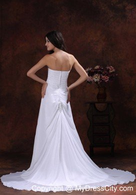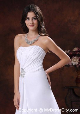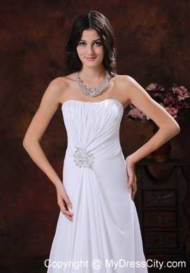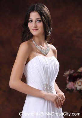 This white prom dress features a beautiful wrapped texture bodice. A straight neckline and dazzling beading make you look special in this dress. The floor length skirt gives you a look of elegence. The back of the skirt extends into a brush train. What are you waiting for? With this fantastic prom dress, you will add beautiful scenery to the prom. Try it on, you will be satisfied with it!