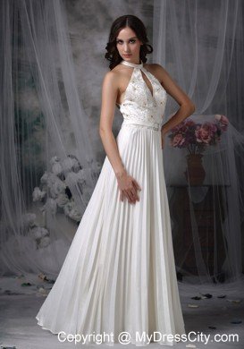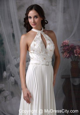 To be a gorgeous at your party, with this beautiful and luxury prom dress, you will be the shinning star! It features a halter-top neckline and the hook hole design shows your beautiful chest and raises lots of fantasies in your mind. The sexy bodice accented with the elegant embriodery and a satin sash which adds the royalty of this dress encrusted with a beaded ring. The midsection rows form two straps in the back, which adds lots of interest and detail. The pleated skirt falls in clean, smooth lines to the floor, wrapping your legs in lovely chiffon. Simplistic elegance at its best!