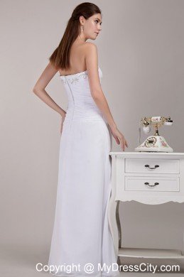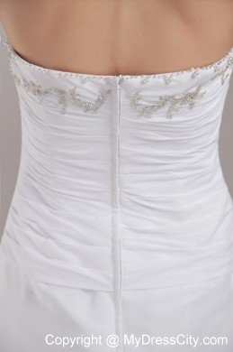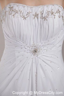 Look like you just stepped from the pages of a bridal magazine in this gorgeous designer-inspired gown. It is made from chiffon and features a strapless neckline and delicated pleated bodice with a a large area of beading. A slit is cut on the first layer of the skirt to creates a good shape. The back of the dress has a nice zipper up closure that secures the dress in place and completes this high end look. So elegant, so perfect!