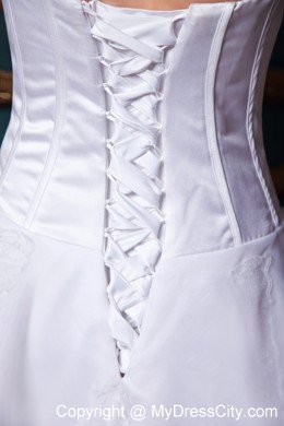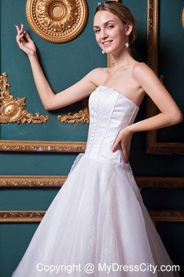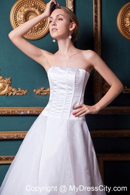 Be the belle of the ball in this fabulous vintage-inspired gown. It has a lovely strapless bodice with a gathered texture. The A-line skirt is full and shapely, thanks to layers of satin and tulle-like fabric. A corset-style closure in the back secures the dress and completes this vintage-inspired design.
