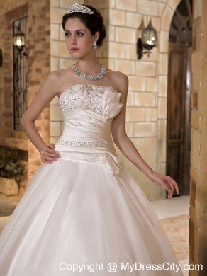 A simple gorgeous style!The strapless beaded floor length gown is your perfect choice to attend ball!The top part of the dress is made of stunning taffeta.It features a strapless neckline with clear beading accented on the ruched bodice, a bow is employed at the hip which makes the dress favorable. The ball gown skirt flows naturally to shape a chapel train, fasteren design with hidden zipper up back is always a classic way for closure.