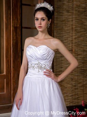 Do you want to rock the presens on your wedding day? If, that dress will be your best choice. The dress features a sweetheart neckline wich will perfectly define your curves with the ruching in the bust area. The wide waistband with the gold embroidey is so eye-catching. The simple skirt with the overlay of a see-through tulle gives you a touch of romance. The same embroidery and the bottom finishes the dress. A hidden zipper-up back completes the look.
