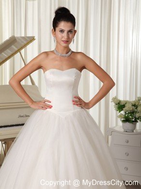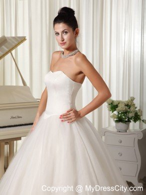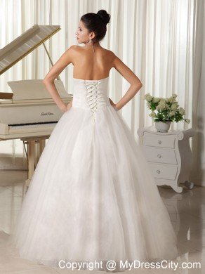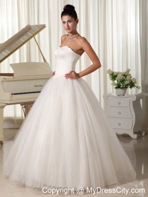 This wonderful white wedding dress must be the number one, the one people are to go after! This one features a body-hugging bodice and a puffy skirt has a floor length overlayed with a sheer net, which makes you Snow White. The back is highlighted with the trim of the corset style closure and a chapel train that fixes all eyes upon. This dress is so gorgeous, it will even make Cinderella jealous!