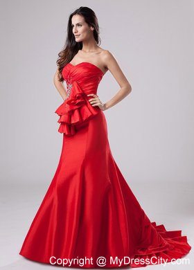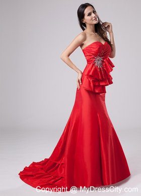 Get the look all your friends will envy as you arrive at your prom or formal in this stunning strapless red prom gown. This is an elegant evening gown with a strapless sweetheart neckline on the ruched bodice. Dazzling beadings on the empire waist crates a flattering trim fit. Float into your prom or black tie event in this long strapless dress and it will look as if you are walking on air.