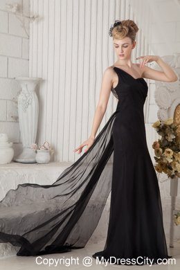 This dramatic prom dress will make you like a star in the party. The elegant look features a one shoulder design with bead works on and a tight-fitted bodice which flatters the waistline perfectly. The floor length skirt continues the already sexy dress more gorgeous with clean lines and folds. Heavily beaded crisscrossed straps and a long scarf from waistline, as if a flowy train, on the back will make you a queen nyou move.