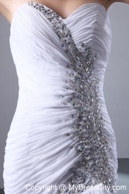 Vintage-inspired dresses are always a great choice for formal events. They are timeless classics that never go out of style. Dancer-inspired gowns like this one are one of the most popular vintage styles. It is made from a nice chiffon fabric and features a gathered, fitted texture throughout the bodice. It has a strapless bodice that has been accented with a pretty beaded panel and ruched fabric in the front and a split design to create a bow effect in the center. The floor-length skirt is made from several tiers of ruffled fabric and features an asymmetrical hem that is longer in the back and shorter in the front. A sexy sultry choice for any occaison.