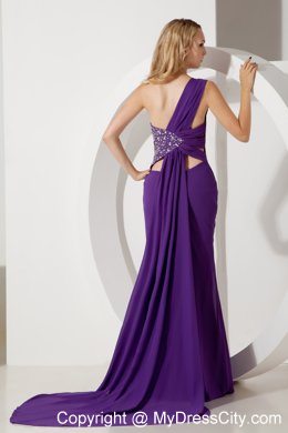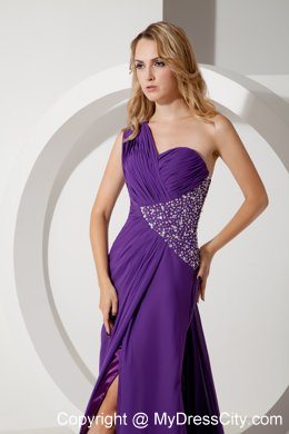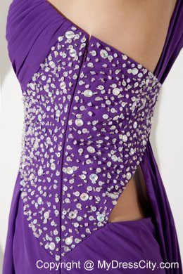 This purple design will give us a feeling of sexy and elegance. The one shoulder style bodice is accented with symmetrical ruchings and sophiscated beadwork in the leftside that can embody your elegance. While the floor length skirt with a sexy slit will show the beauty of your leg. The ruched one shoulder shape to a sheath in the back that woven into the bodice and flows across the shoulder like a shawl. It is one of the favorite style on fashionable market today.