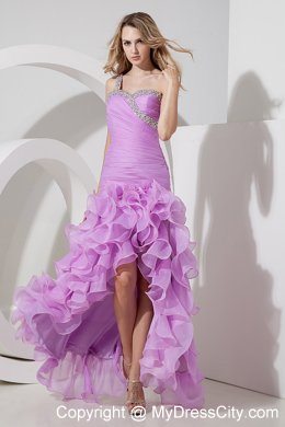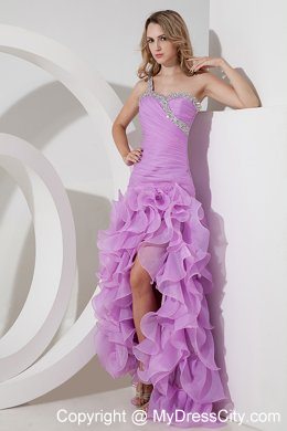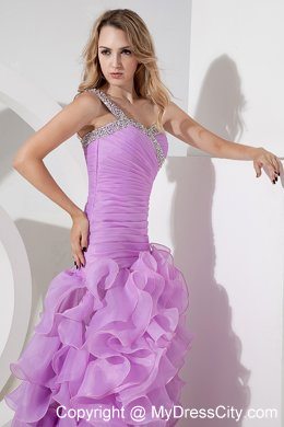 If you`d like to stand out in a chic way, try this one shoulder strap dress on! Cause it exudes exceptional grace and allure by slipping into this stylish! Its boldly ruffled single shoulder strap injects a touch of asymmetry. The sweetheart neckline is bordered by twinkling embellishments and bedecked with amazing ruchings. Breathtaking ruffles run along the high-low skirt and produce a sweep train.These ruffles move effortlessly with the wearer completing the sense of fantasy that is prevalent in this amazing style.