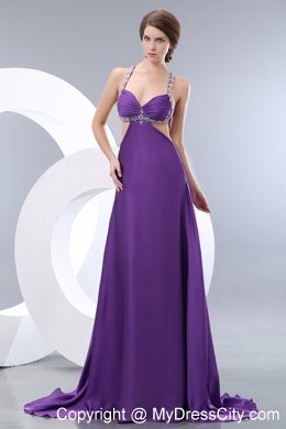 This gorgeous and pretty dress is sure to work wonders for any figure! The bold bodice is accented with two beaded straps crossed in the open back added another X shaped straps and a modified sweetheart edged beaded hemline with two hollows to show your wild quality. The skirt is shining, pooling in luxurious puddles of taffeta at your feet. The hem is slightly ruffled which adds lots of interest and detail. This is a truly stunning dress that will make you the belle of the ball�regardless of the occasion.