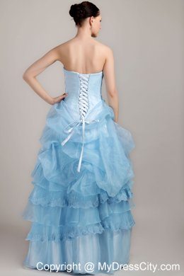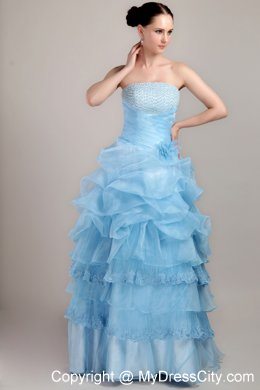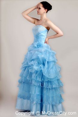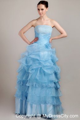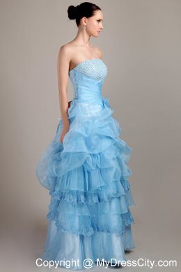 Try this mermaid trumpet prom dress with romantic multi-layer bottom that emphasizes your feminine shape. Exquisite bodice is covered by numerous shining beads on the bust and neat and orderly ruches all around the waist. Strapless design and blue color adds the pretty statues for you. Pretty lace-up design makes it fit all figures