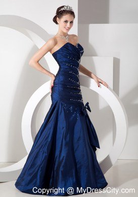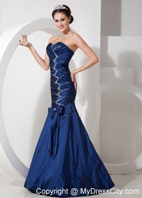 This elegant fit and flare mermaid gown is a gorgeous work. The ruched bodice has a sweetheart neckline that is beautifully accented with zigzag shaped beading. A bow adorns the mid-section of the dress, leading up to the focal point. Make the magic happen in this fabulous prom dress!