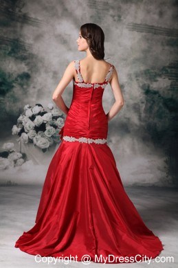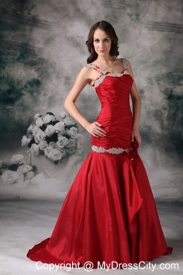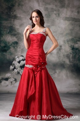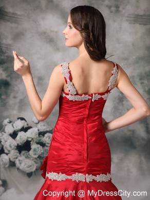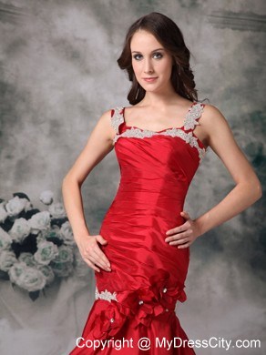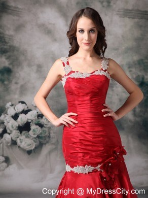 So breathtaking and elegant. Elegance abounded with the slim long dress with wide appliqued straps and pleating bodice creates a flattering bodice with appliques along the bustline. Hand made flowers on the leftside of hips are the perfect accents for this magnificent dress. Pleating continues into a soft drape down the trumpet style skirt. The back completes with hidden zipper and brush train.
