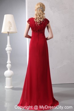 This flowing floor length skirt will be your favourite in your wardrobe. A wide lace fabric decorates the hem of the scoop neckline and the waist line, froming two cap sleeves on the top and an inverted V-shape in the front midsection. It is perfect for any particular occasion. If you dress it to your prom or other formal occasions, the elegant red dress will have all eyes on you.