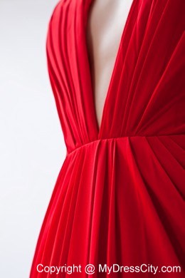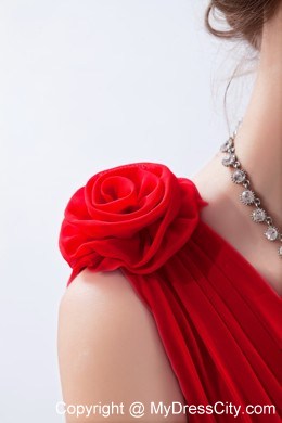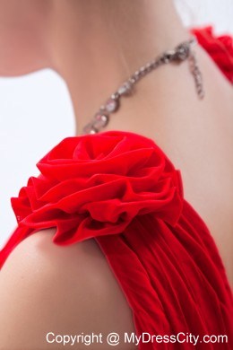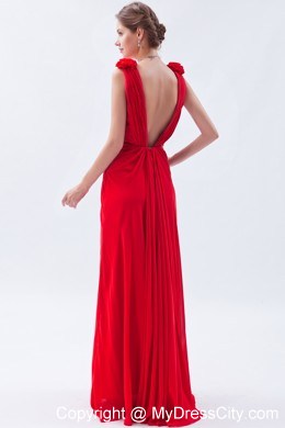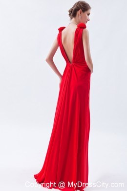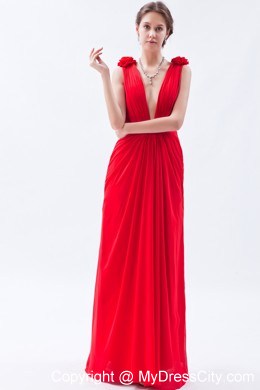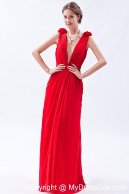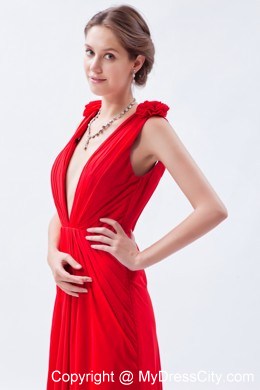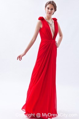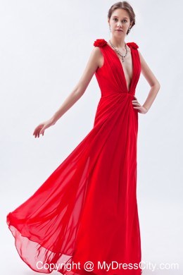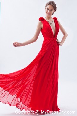 Make an entrance in this sexy prom gown! The pleated bodice is accented with sexy deep v-neckline and chic flowers on the shoulder. A flowy and lightsome skirt creates the romantic and gorgeous illusion greatly. The V-shape open back adds charming feeling to this dress. This breathtaking dress will make your day one to remember!