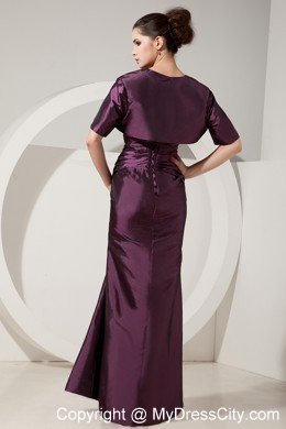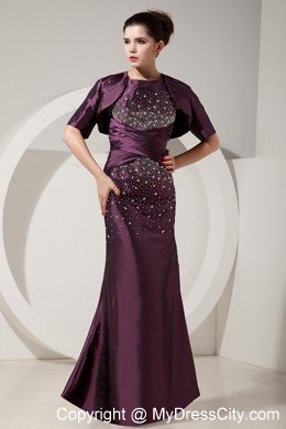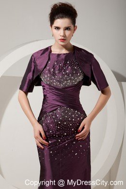 Bandage style dresses are very popular figure flattering designs. You are sure to stand out with this gorgeous dress accented with a decent scoop neckline and encursted heavily with shimmery crystals on the bodice except the waist wrapped by crossed pleats. A modest fishtail skirt is floor length with smooth lines which curves your good figure with no doubt. The perfect look is finished in a lace up tie back. With the matching mid-length sleeves jacket, you can hold your shoulder and back from revealing if you'd like.