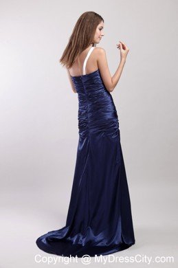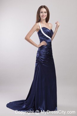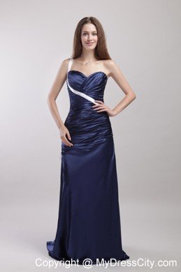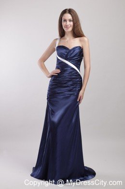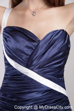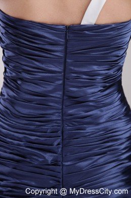 This sample dress is both good-looking and fun to wear.Blue solid color skirt features a sweetheart bodice with an unexpected white band across from the left waist to right shoulder,and a pretty wrapped texture that extends well past the hips. The skirt calls in clean lines, pooling at your feet in wonderful puddles of soft folds, creating a beautiful silhouette.