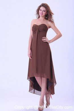 Elegant and romantic! The bodice accented by the ruches throughout flatters most figures. The strapless bodice feature the sweetheart neckline. It truly is an example of high end couture fashion. The layered high-low adds the charm. The simple zipper in the back of the dress secures it in place and makes for easy off and on. You are sure to be charming and fabulous at your very special day.