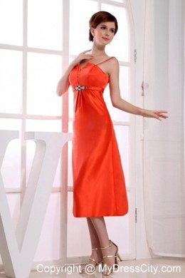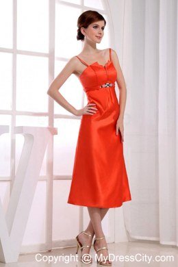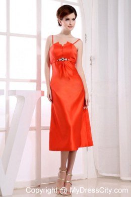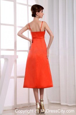 If you want yourself bright in the party,the orange red taffeta dress is the best choice.It features a beautiful Spaghetti Straps design with a pleated bodice that adds lots of visual interest and detail. The midsection is cinched by a coordinating waist sash that has a shining beading accents. The tea-length straight skirt and a hidden zipper up back completes the look and guarantee the great fit.